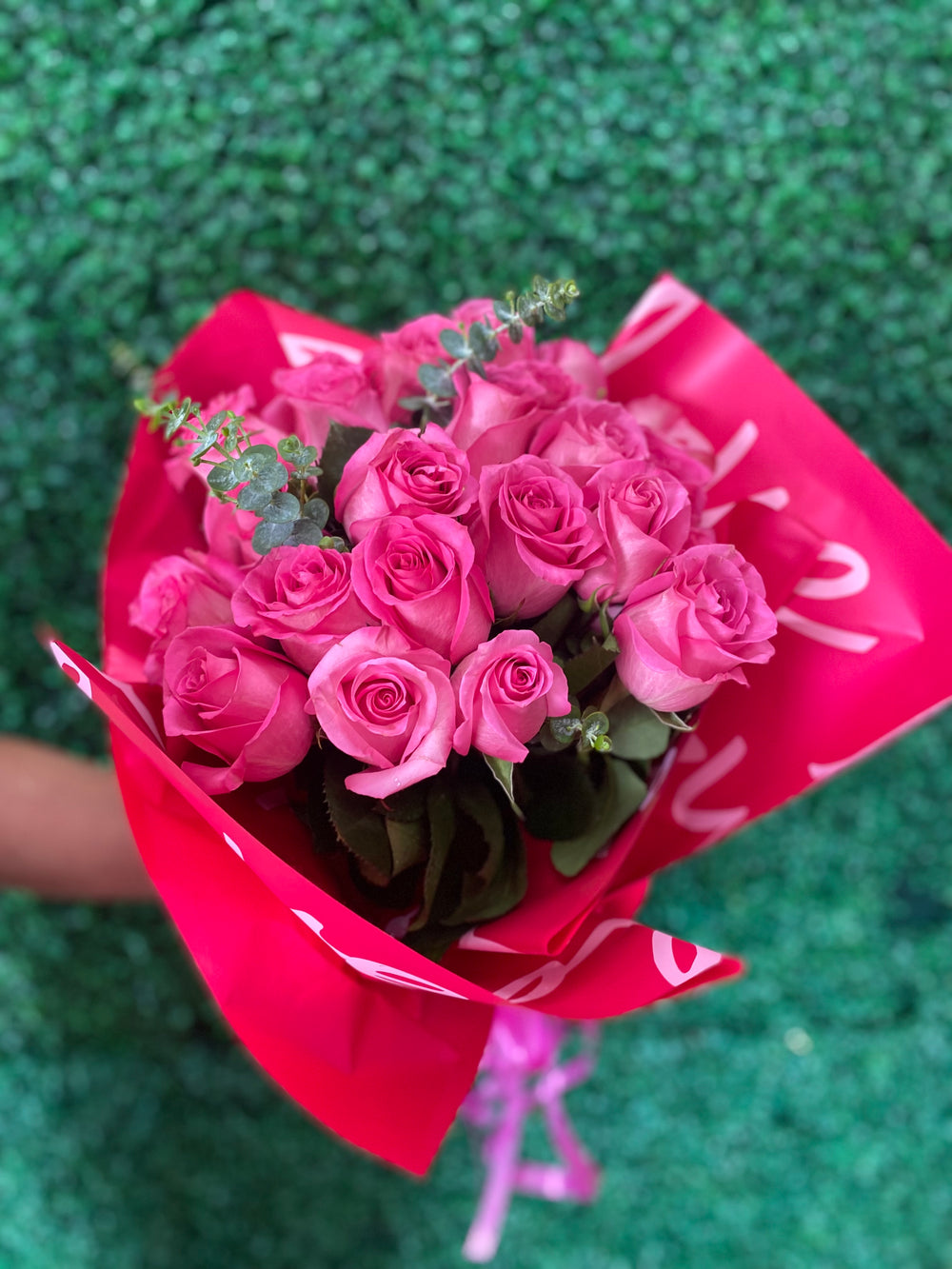 Capture the essence of enduring love with our "Timeless Romance in Pink" hand bouquet. This classic arrangement features two dozen delicate pink roses, meticulously chosen for their soft and romantic allure. The compact design is a symbol of timeless elegance, expressing affection in a way that transcends the ordinary.